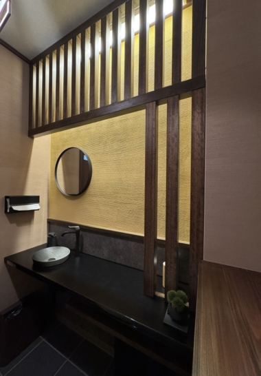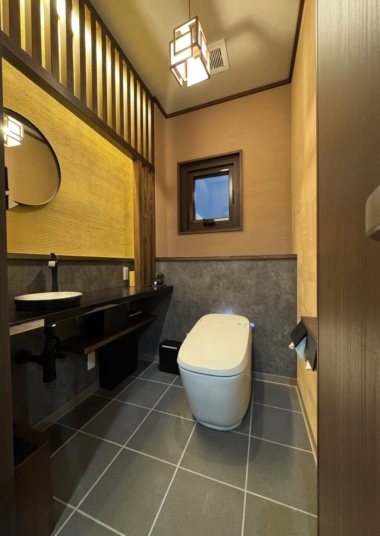 お客様に最新のトイレを体感していただき、心地良くその空間をご利用いただけるよう、ショールームのトイレを和モダンの空間へと改装いたしました。