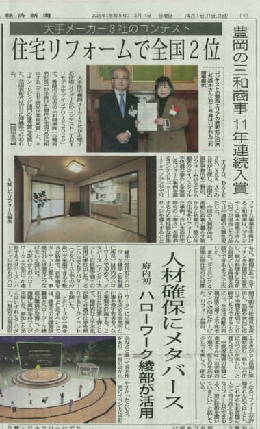 リフォームコンテストで全国2位受賞