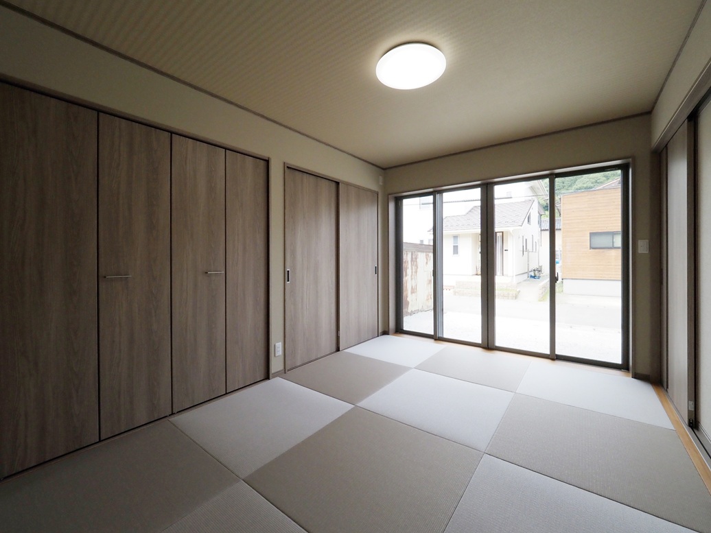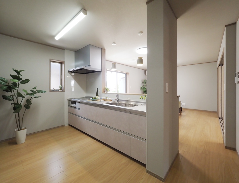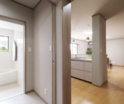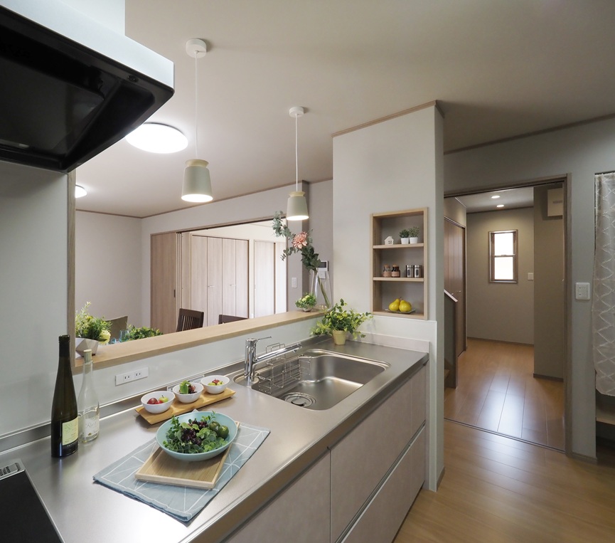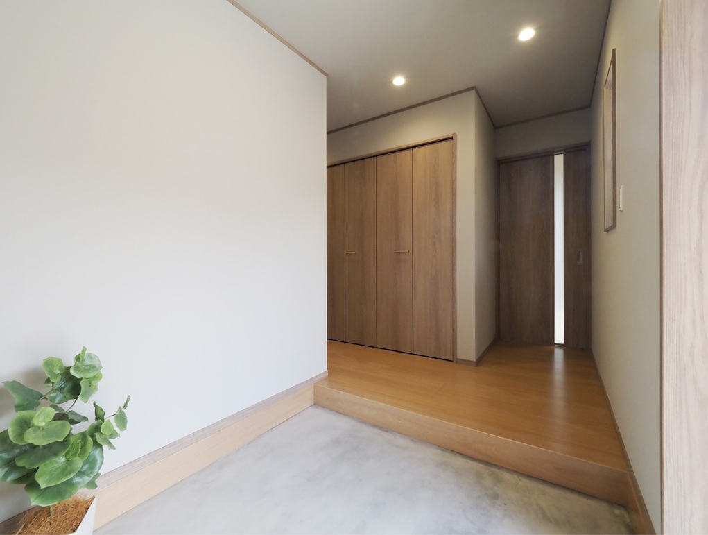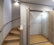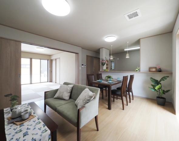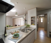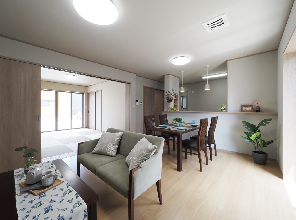 リフォームのポイントは ■間取り見直し ■水廻り動線 ■開放感 ■減築 ■耐震補強 の5点。対面キッチンのLDKと和室は、扉を開けて開放的な広々空間に、締めて独立した空間にと変化可能。不要な縁側を減築し、3台止められる駐車場スペースを確保、玄関ポーチもゆったりと作りました。玄関横には土間収納もあり、外仕事の道具などもたっぷり入ります。キッチンからお風呂、洗濯室は遮るものもなくスムーズに。すべての部屋に収納付き。屋根も新しく葺き替え、外壁も窓も一新し、断熱性も抜群。安心して暮らせるように耐震工事も施しました。まるで新築のように生まれ変わりました!